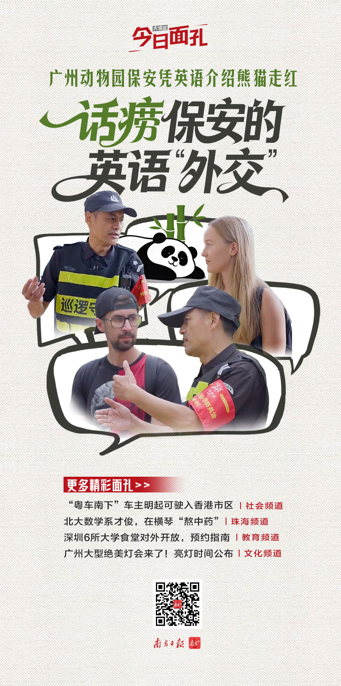 在广州动物园熊猫馆,55岁的老黄用一口流利英语把保安职责“玩”出了新高度。